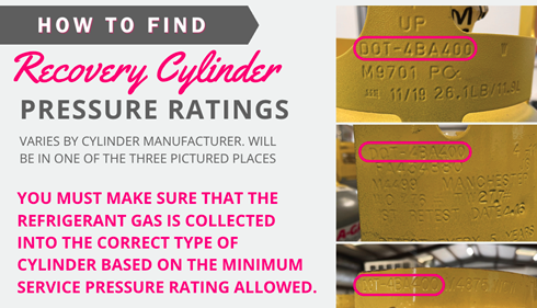 Did you know that refrigerant recovery cylinders have different pressure ratings and maximum filling capacities? It is unsafe to collect refrigerants into cylinders with the incorrect pressure rating. It is also unsafe to overfill a cylinder, even if it is in the correct cylinder type for its pressure.