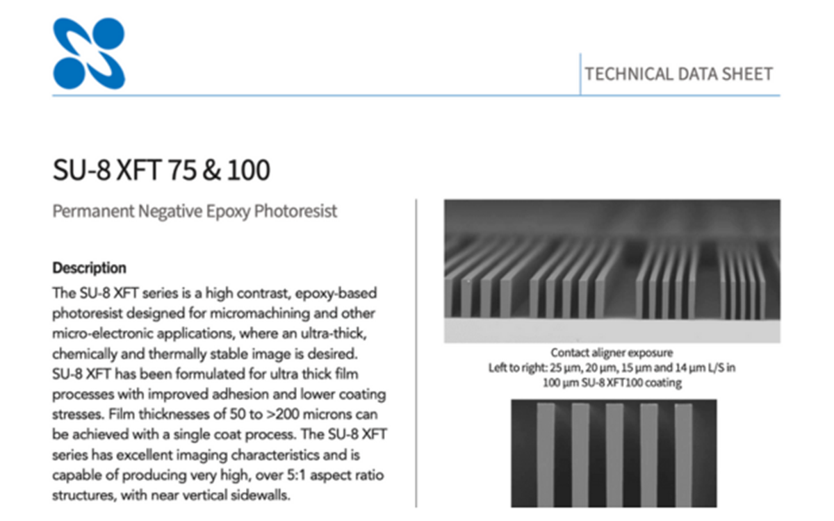 Discover the technical details of SU-8 XFT 75 & 100 epoxy photoresist